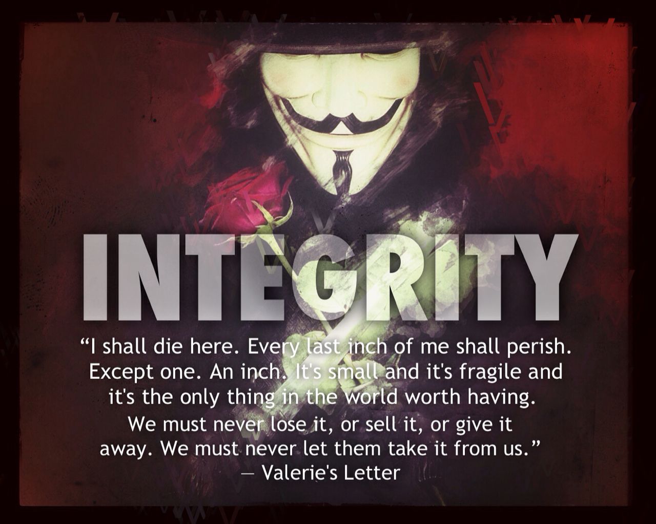 V For Vendetta Integrity Quote – Some could say he’s a freedom fighter, like V from the film “V for Vendetta.” Maybe … just maybe he is V This is the beginning monologue of the film by Evey but a great quote for us to end on. . WIRED is where tomorrow is realized. It is the essential source of information and ideas that make sense of a world in constant transformation. The WIRED conversation illuminates how technology is .